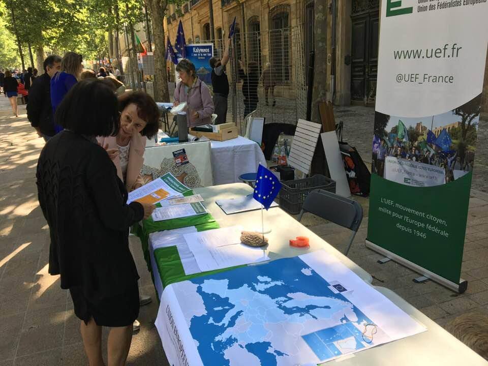 Le 9 mai 2018, pour la fête de l’Europe, l’UEF était présente pour la première fois sur le Cours Mirabeau à Aix en Provence.