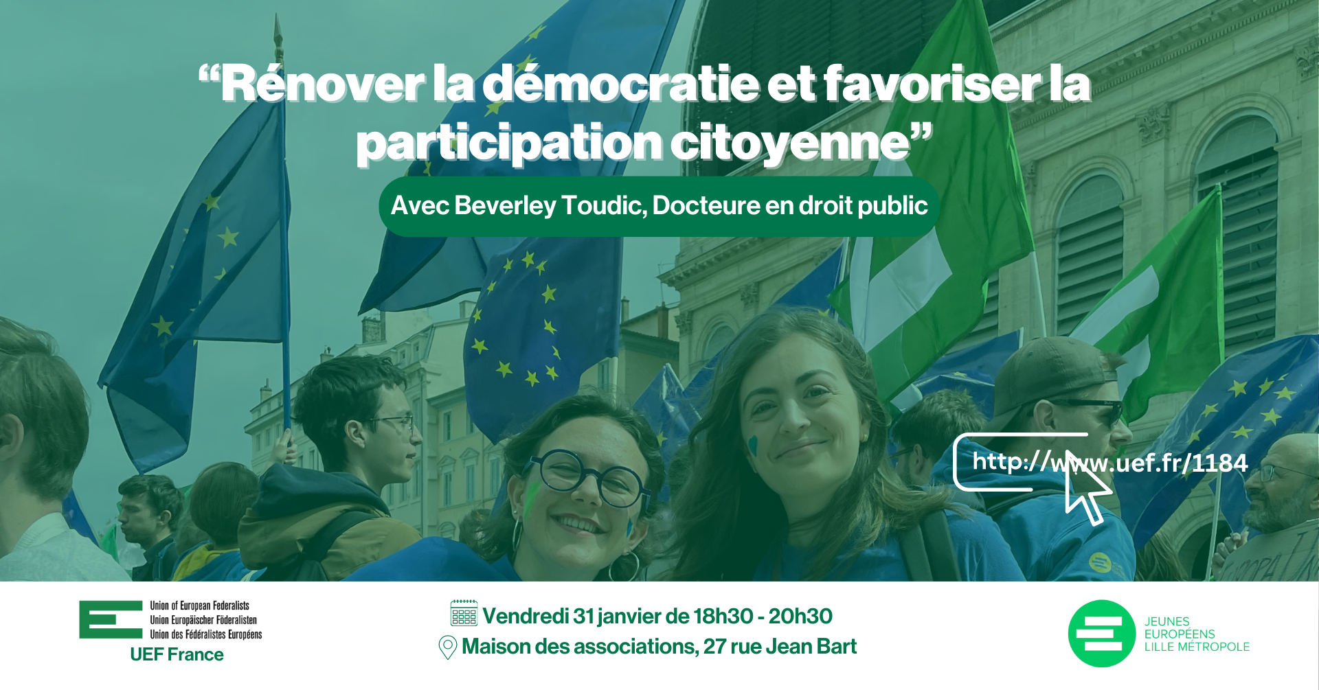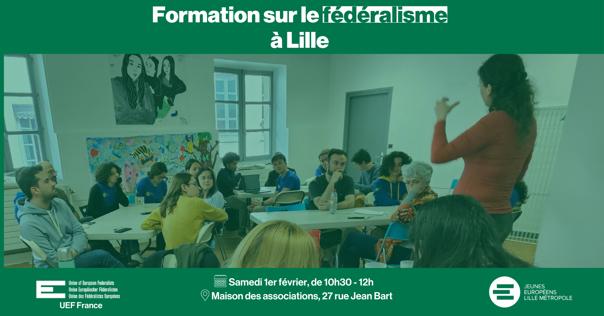 L’UEF France, l’antenne Hauts-de-France et les Jeunes Européens Lille Métropole, vous donnent rendez-vous pour un week-end fédéraliste le vendredi 31 janvier et le samedi 1er février à Lille.